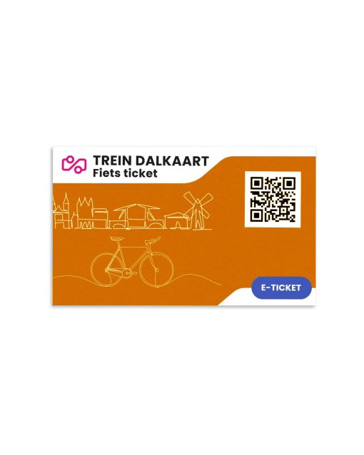 Let op: Dit E-ticket is geldig in treinen van NS en andere treinvervoerders die fietskaartjes accepteren. Controleer vooraf of jouw vervoerder de Trein Dalkaart Fiets accepteert.